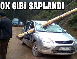 İlçeye bağlı Günyüzü köyü yakınlarında ormandan kestikleri ağaçları budadıktan sonra yola indirmeye çalışan işçilerin yamaçtan yuvarladığı tomruk, eşi İlknur Kuş ile Ağaçbaşı Yaylası'ndan Dokuzdönüm Yaylası'na giden Bahri Kuş'un kullandığı 61 TP 782 plakalı otomobilin tavanından girip sağ ön camından çıktı.