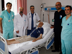 Erden, “Yapılan tetkiklerde aort damarında ileri derecede balonlaşma olduğu, aort kapağında ileri derecede kaçırma olduğu ayrıca doğuştan kalbinde 1 cm’lik delik olduğu ve Koroner Anjio grafikte koroner damarlarda darlık olduğunu saptadık. Ameliyatta hastamızın hem aort damarını değiştirdik bu ameliyatta, aort kapağını değiştirdik. Doğuştan kalbinde olan deliği tamir ettik. Kalbin 3 farklı yerinden 3 damarla koroner by-pas operasyonu aynı seansta yaptık. Hastamızın şu anda durumu oldukça iyi, böyle devam ederse 2-3 gün içinde taburcu edeceğiz. Ameliyat 5 saat civarında sürdü herhangi bir sorunumuz olmadı ameliyatta. Aynı anda bu kadar ameliyatı yapınca ameliyatın riski biraz daha artıyor. Tabi ki hepsini aynı anda yapmamız gerekiyordu” dedi.
