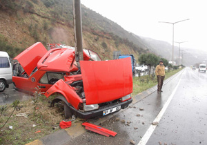 Alınan bilgiye göre, Trabzon'dan Akçaabat yönüne gitmekte olan Refik Durmuş (57) yönetimindeki 61 EN 085 plakalı otomobil, Söğütlü beldesinde kontrolden çıkarak elektrik direğine çarptı. Kazada yaralanan otomobil sürücüsü Durmuş, Akçaabat Devlet Hastanesi