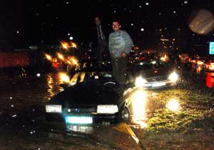Beşirli-Bölge Trafik Müdürlüğü arasında göle dönen yolda yüzlerce araçlık konvoy oluşurken, arızalanan araçlar yollarda kaldı.