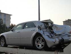 Ön lastiğinin patlaması sonucu sürücüsünün direksiyon hakimiyetini kaybettiği özel araç ta maddi hasar meydana gelirken araç sürücüsü kazayı yara almadan atlattı