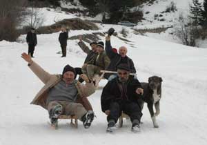 Kar üstünde karakucak güreşleri gerçekleştirerek Türkiye'de bir ilki gerçekleştiren köylüler, bu defa kar üstünde tahta kızak yarışması düzenlediler. Birinci olan ekibe kaybeden ekip tarafından bir koç verildiği kızak yarışı, soğuk havaya rağmen büyük bir çekişme içinde geçti.