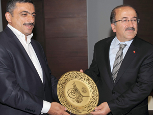 Ziyaretin sonunda Başkan Gümrükçüoğlu, ASKON heyeti Başkanı Sami Bektaş’a porselen tabak hediye etti.