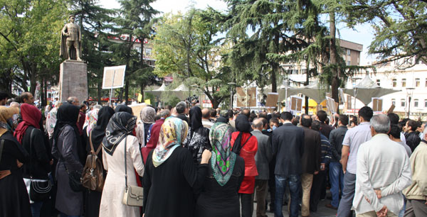 Basın açıklaması Trabzon’da alışılagelmişin dışında, Meydan Parkı’nda ki Atatürk Heykeli’nin altında değil tam karşısında yapıldı. Bu konuyla ilgili basın açıklamasını okuyan Arif Akkuzu, gazetecilerin sorularını yanıtlayarak, “Ben onunla aynı karede bulunmak istemedim” dedi.