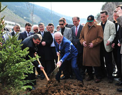Bakanlar ellerine kürek alarak fidan dikimine yardım ettikten sonra, çam fidanını birlikte suladı. Bakan Eroğlu ve Bayraktar daha sonra hastane içerisinde bir dizi ziyaret ve incelemelerde bulundu.