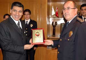 Ziyaretin anısına Emniyet Müdürü Boz, Vali Okutan'a bir plaket verdi.
