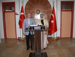 Vali Kızılcık, Meclis Başkanı Dahrani ve Büyükelçi Abdulla’ya telkariden yapılmış fincan takımı hediye ederken, Meclis Başkanı Dahrani’de Vali Kızılcık’a plaket verdi.