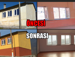 Dördüncü sınıf öğrencileri ilçeye bağlı Gümüşlü Köyü anaokulunun iç ve dış cephe boyasını ve sınıfın beton olan zeminini küçük öğrencilerin fizyolojisinin bozulmasını engellemek için laminant parke yaptılar.