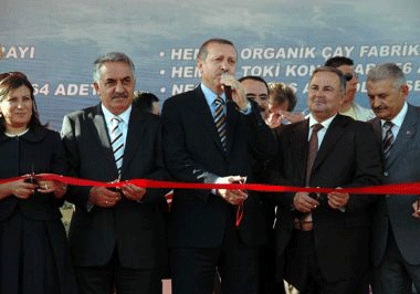 Başbakan Erdoğan Pazar ilçesi Hamidiye mevkiinde Pazar Bölge Adliye Sarayı, Pazar Öğretmenevi, 164 adet Ardeşen ilçesindeki afet konutu, ÇAYKUR Hemşin Organik Çay Fabrikası, Hemşin 56 adet TOKİ konutu ve 16 derslikli Necati Sağbaş Anadolu Lisesi'nin açılışına katıldı. Beraberindeki bakanların yanı sıra Adalet Bakanı Sadullah Ergin de bu açılışa katılırken, Başbakan Erdoğan, törende bir konuşma yaptı. Başbakan Recep Tayyip Erdoğan, Rize'ye her geldiğinde "ucube gibi evler yapmayın" diye söylediğini ifade ederek "Bu konuda anlaştık mı ? Anlaştık. Burada bir Adalet Sarayı yaptık. Dedelerimizin projelerine benzer bir proje ile yapıldı. Bunlar yapılmaya devam edecektir. Rize'de bu mimari yaygınlaşacaktır. Bal bal demekle ağız tatlanmaz,. Balı yersen ağzın tatlanır. Biz istiyorsak önce kendimiz yapalım ki başkaları da aynısını yapsın. Bende kardeşimle Rize'de böyle bir ev yaptım" şeklinde konuştu.