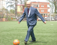 Kahvaltı sonrası yakınlarda bulunan bir halı sahaya girerek kaleye şut çeken Bayraktar, daha sonra seçmenleri ile toplu fotoğraf çektirdi.