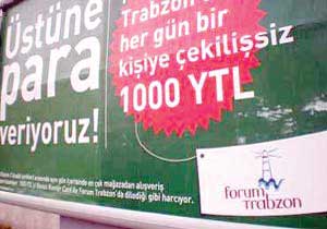 Reklâm ve afişlerde Forum AVM'de alışveriş yapanlar belli harcamanın üzerine çıkarlar ise üste para verileceği belirtiliyor.