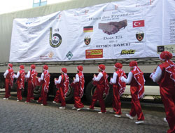 Yaklaşık 4 ay önce Bremen Galatasaray Taraftarları Derneği Başkanı Hasan Küşneci ve başkan yardımcısı Fatih Durmuş’un Bayburt’a gelmesiyle organizasyonu resmi olarak ilimizden başlattıklarını belirten Belediye Başkanı Polat, yaptığı açıklamada, “Bremen Galatasaray Taraftarları Derneği, 4 aylık bir kampanya yaptı ve bu kampanyayı da basın yayın kanalıyla Almanya’nın her tarafına duyurdu. Biz buradan bir tır kiraladık, oraya gönderdik onlar da 4 ayda biriktirdikleri malzemeleri tıra yüklediler. Biz de geçen Perşembe günü Almanya’ya gittik ve orda bunun şölenini yaptık. Halkoyunları eşliğinde program tertip ettik. Onlara teşekkür plaketleri verdik. Geçtiğimiz Cumartesi günü yardım tırımızı oradan gönderdik. Tırın içinde her şeyden önce sevgi ve muhabbet var. Oradaki insanların Türkiye ye, Bayburt’a gönderdikleri sevgileri var. İçindeki malzemeleri sıralayacak olursak; bunlar arasında yoğun şekilde ortopedik malzemeler var, akülü ve aküsüz engelli araçlar, koltuk değnekleri, ortopedik yataklar, kırtasiye malzemeleri, spor malzemeleri, Werder Bremen’in formaları var. Onları Türkiye ye göndermiştik, şu anda tırımız yolda Bayburt’a geliyor. Yardım tırının buraya gelmesinin ardından Bremen den gelen arkadaşlarla bir organizasyon yapıp onların yanında ihtiyacı olan vatandaşlarımıza bunların teslimini yapacağız” dedi.