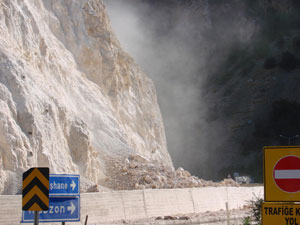 Gümüşhane-Trabzon kara yolu Torul ilçesi çıkışında sabah saatlerinde meydana gelen heyelanın ardından yeniden yola toprak ve kaya parçaları düştü.