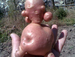 Gümüşhane Merkez Avcılar Atıcılar ve Amatör Balıkçılar Doğayı Koruma ve Yaban Hayatı İhtisas Derneği Başkanı Fahri Demir, Mescitli köyünde patates söküm döneminde topraktan çıkardığı patatesin “insana” benzediğini anlayınca cep telefonu ile fotoğrafını çekti.