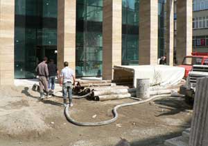 Hamamizade İhsan Bey Kültür Merkezi inşaatında kullanılan çimento şap makinesinin hortumunda yaşanan kopma sonucu meydana gelen gürültü, çevre esnafını ve vatandaşları korkuttu.