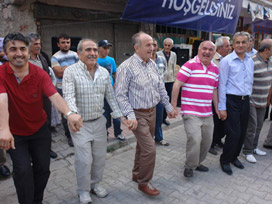 İlçeye bağlı Kaçkar Dağları eteğinde bulunan Sarıgöl Köyü'nde tulum eşliğinde horon oynayan başkan Topbaş'ın oldukça neşeli olduğu gözlendi.