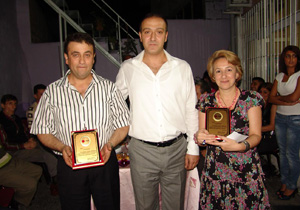 Daha sonra Köksal Ayşan, eski başkan Ali Adanur ve Başkan Yardımcısı Hatice Öksüz'e birer teşekkür plaketi takdim etti.