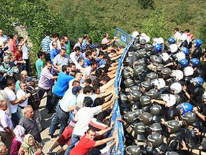 Jandarma ve polis ekiplerinin uyarısına uymayan eylemcilerle güvenlik güçleri arasında yine arbede çıktı. Jandarmanın dağılmaları için yaptığı rağmen, çevreciler yolun tek şeridinde eylemlerine bir süre daha devam etti.