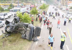 Edinilen bilgiye göre, Rize'den Samsun'a gelen ve sürücüsü henüz tespit edilemeyen 34 VL 9631 plakalı otomobil, Samsun-Ordu karayolu 6. kilometresi Kirazlık mevkisinde saat 10.30 sıralarında kaza yaptı. Bir yarış motosikletinin yol açtığı ileri sürülen kazada kontrolden çıkan otomobil, refüj ortasındaki beton aydınlatma direğini parçalayıp yandan yattı. Hurdaya dönen otomobilin içinde bulunan 3 kişi olay yerinde hayatını kaybetti.