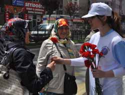 Kırmızı ışıkta geçenlere ceza, yeşili bekleyenlere çiçek verildi.