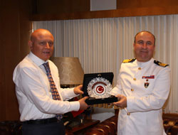 Vali Kızılcık ziyaret anısına Kıdemli Albay Enç'e telkariden yapılmış plaket verdi. Enç'te ziyaret anısına Vali Kızılcık'a Türk donanmasını simgeleyen bir hediye takdim etti.