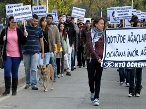 İktisadi ve İdari Bilimler Fakültesi önünde toplanan Öğrenci Kolektifi üyesi yaklaşık 50 öğrenci, ODTÜ ’de yaşanan olayları protesto amacıyla rektörlük binasına kadar yürüdü. ‘Diren ODTÜ, KTÜ seninle’, ‘ODTÜ’de ağaç kesenlerin ocağına incir ağacı dikeceğiz’ ve ‘Ağaçtan maşa Gökçek’ten paşa olmaz’ dövizleri taşıyan öğrenci grubu Ak Parti aleyhine sloganlar attı.