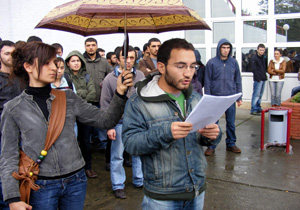 Basın açıklamasının ardından grup üyesi öğrenciler 'YÖK'e hayır, üniversiteler bizimdir' şeklinde sloganlar atarak olaysız bir şekilde dağıldı.