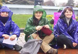 Havanın soğuk ve yağmurlu olmasına aldırmayan 7 öğrenci Rektörlük Binası önünde oturma eylemi yaptılar. Öğrencilerden bir tanesi de yanında getirdiği yün ve iple eylem boyunca elişi yaparak rektörlüğün tutumunu protesto etti, "Yapacak başka şey kalmadı ben de elişi örüyorum" dedi.