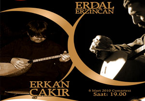Ünlü bağlama virtüözlerimizden Erdal Erzincan ve Erkan Çakır 6 Mart 2010 Cumartesi saat 19:00'da Karadeniz Teknik Üniversitesi Atatürk Kültür Merkezi'nde siz değerli türküseverlerle...