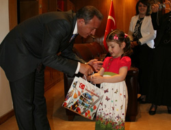 Daha sonra çocuklarla hatıra fotoğrafı çektiren Vali Kızılcık, onlara boyama ve okul öncesi eğitim kitapları hediye etti.