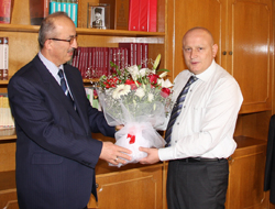 Günün anısına İl Müftüsü Çakı, Vali Kızılcık’a çiçek takdim etti.