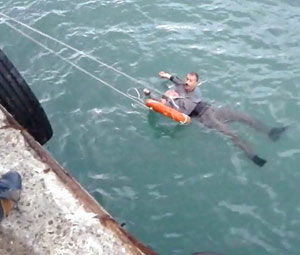 Olay, Atatürk Bulvarı’ndaki liman sahasında meydana geldi. Erol K. (49) bilinmeyen bir nedenle üzerindeki giysileri çıkarıp ayakkabısı ile birlikte denize attı. Limanda balık tutan vatandaşlar olayı fark etti. Serkan Karakuş adlı bir kişi, denize atlayarak Erol K.'yi can simidiyle kurtarıp karaya çıkarttı. Kurtarma anı vatandaşlar tarafından cep telefonu ile kaydedildi. Sağlık ekiplerinin ilk müdahaleyi olay yerinde yaptığı Erol K., ambulansla Ordu Devlet Hastanesi'ne kaldırıldı. Polis, olayla ilgili soruşturma başlattı.