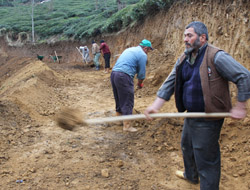 Rize’nin Çiftekavak Mahallesi’nde yaşayan Erdoğan Dilsiz (59) isimli kişi mahallesine yol almak için 1,5 aydır kazma ve kürek ile çalışıyor.