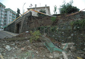 Rize Ticaret ve Sanayi Odası'nın bahçe duvarında meydana gelen heyelan paniğe neden oldu.