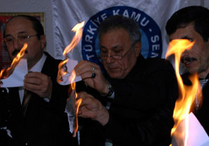 Türkiye Kamu-Sen Rize Şubesi Başkanı Celal Akarsu, tarafından bugün sendika binasında düzenlenen basın açıklaması ile hükümetin memur maaşlarına uyguladığı düşük artış ve zamlar eleştirildi. Akarsu yaptığı açıklamada, Yoksulluk, açlık ve kaderine terk edilen memurlar, ekonomik olarak ayrımcılığa tabi tutulmaktadırlar. Son bir yılda işsizlik oranı 800 bin kişi artmıştır. Bir çok ürüne yüzde 100'e yakın zam gelmiştir. Memurlara en düşük 26 en yüksek 35 TL arasında zam yapılırken sadece sağlık alanındaki katalım payı uygulaması ile aylık kaybımız 60 TL'dir. Memurlar olarak bizi sevmeyenlere karşı hak ettikleri tepkiyi verecektir dedi. Ardından Türk Kamu-Sen Rize Şubesi'ne bağlı memurlar hükümetin maaş ve zam politikalarını protesto etmek için maaş bordrolarını yaktılar.