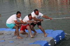 Yaz Sporları Şenliği kapsamında yapılan Denizde Halat Çekme yarışmasında Rizeliler kendi aralarında kurmuş oldukları 3’erli takımlarla birbirlerine rakip oldular. Yarışma Deniz üzerinde kurulan platformlar üzerinde 12 takımın zorlu mücadelesiyle gerçekleşti. Toplamında 36 sporcunun katıldığı yarışmada deniz üzerinde kurulan platform da yarışmacılar ayakta durabilmekte güçlük çektiler. Her şeye rağmen mücadele eden sporcular tüm güçlerini ortaya koyarak dereceye girmenin mutluluğunu yaşadılar. Her yıl yapılan yarışmada bu yıl “Weider” takımı birinci olurken, ikinci geçen yılın birincisi “Ayı Boğanlar” takımı oldu. Yarışmanın üçüncüsü “Extreme Türk” takımı oldu.