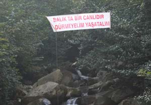 Rize'nin Güneysu ilçesine bağlı Asmalıırmak köyü halkı köylerinde akan dere boyunca astıkları pankart ve tabelalar ile balık neslinin sürdürülmesi gerektiğine dikkat çekiyor.