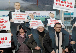 Çevreci protestocular, Başbakan Recep Tayyip Erdoğan'ın elinde döviz bulunan maketlerini omuzlarına almaları dikkat çekti. Çevreciler, bu yöntemle Başbakanı da protestolarına ortak etti.