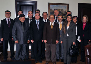 Rusya'da kurulacak Türk Lojistik Merkezi'nin altyapısının oluşturulması için incelemelerde bulunmak üzere Trabzon'a gelen Rusya Lojistik Heyeti Trabzon Belediye Başkanı Dr. Orhan Fevzi Gümrükçüoğlu'nu ziyaret etti.