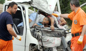 Samsun’da çalışma nedeniyle tek şeritten verilen yol yağış nedeniyle kayganlaşınca TIR ile kamyonet çarpıştı. Kazada TIR sürücüsü 41 yaşındaki Ahmet Tuğla ağır yaralandı, kamyonet sürücüsü 39 yaşındaki Burhan Keskin, 29 yaşındaki Hakan Seven ve 31 yaşındaki Mehmet Yılmaz öldü.