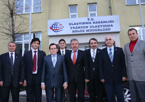 Trabzon Ticaret ve Sanayi Odası (TTSO) Yönetim Kurulu Başkanı Suat Hacısalihoğlu ve beraberindeki Yönetim Kurulu üyeleri Ulaştırma Bölge Müdürü Nurettin Aydın' ı makamında ziyaret ederek, bölgede yürütülmekte olan yatırımlar hakkında bilgi aldı.