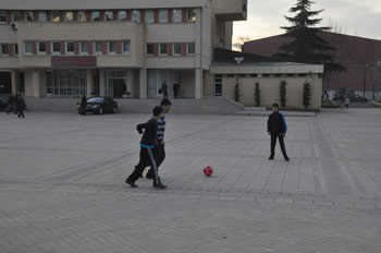Haber61.Net - Haber Servisi - Trabzon Valiliği protokol çıkış bölümünde okuldan yeni çıkmış çocuklar çantalarını bir kenara bırakarak top oynamaları valilik önünde ilginç görüntülere sahne oluyor. Çevre mahallelerde yaşayan ailelerin çocukları her gün orada top oynadıklarını ifade ettiler. Öte yandan Çocukların top oynadığı alan Trabzon Valisi Dr Recep Kızılcık’ın makam odasının da önü olduğundan Dr. Recep Kızılcık’ın çocukları ne kadar sevdiğinin de göstergesi. Her akşam Valilik önünde top oynayan çocuklar Trabzon Valisi Dr Recep Kızılcık’ı çok sevdiklerini söyleyerek “ biz burada her akşam top oynuyoruz ve vali amca bizi görüyor akşamları eve giderken bir şey demiyor.”şeklinde konuşarak duygularını dile getirdiler