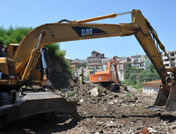 Trabzon Belediyesi ile TOKİ tarafından yürütülmekte olan Zağnos Vadisi Kentsel Dönüşüm 2. Etap Projesi kapsamında kamulaştırılan binaların yıkımı sürüyor.