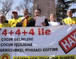 KESK Şubeler Platformu adına basın açıklamasını okuyan Ümit Pamuk, konuyla ilgili iktidarı uyardıklarını belirterek, söz konusu kanun teklifinin her ne kadar zorunlu eğitimi 4+4+4 şeklinde kademeli olarak 12 yıla çıkartacağı iddia edilse de, uygulamanın zorunlu eğitimi bölümlere ayrılarak kademelendirilmesiyle kız çocukları açısından örgün eğitimin fiilen 4 yıla inmesi anlamına geldiğini söyledi. Pamuk “Yapılması düşünülen değişiklik öğrencilerin 4. sınıftan sonra dışarıdan açık öğretimle eğitimlerine devam edebilmesinin önünü açmakta ve çocukların büyük ölçüde dini ve ekonomik gerekçeler ileri sürülerek okuldan ve okul ortamından uzaklaşmasına aracı olmaktadır” dedi.