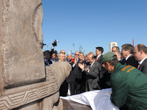 Mimar Sinan Uluslararası Proje Olimpiyatları’nın anısını yaşatmak amacıyla Toklu sahilinde yaptırılan Bilge Kağan anıtı törenle açıldı.