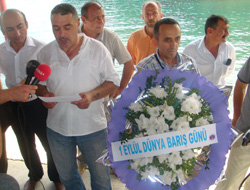 Açıklamanın ardından dernek üyelerince denize, üzerinde ''1 Eylül Dünya Barış Günü'' yazılı çelenk bırakıldı.