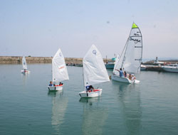 7-11 yaş grubu minik sporcularını eğiten ve bu konuda onlara tam güven veren Yat Spor Kulübü denizde yelken üstünde hünerlerini sergiliyor.