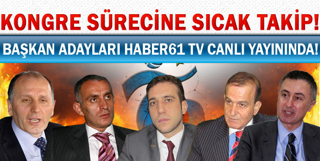 Başkan adayları tek tek toplantı yaparak Haber61 tv üzerinden canlı olarak sizlere ulaştıracağız. Böylelikle adayları daha yakın tanımış olacak ve tespit ,çözüm ile projelerini en ayrıntılı şekilde öğreneceksiniz.