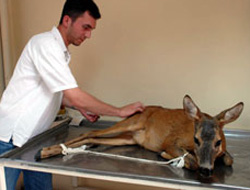 Trabzon'da ateş açılması sonucu yaralanan, kör olduğu belirlenen karaca, vücudundaki yaralar tedavi edildikten sonra Bursa'nın Karacabey ilçesindeki Yaban Hayatı Kurtarma ve Rehabilitasyon Merkezine gönderildi.