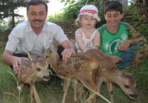20 gün önce aynı anneden doğdukları tahmin edilen karaca yavrularından bir tanesinin kulakları bulunmuyor.